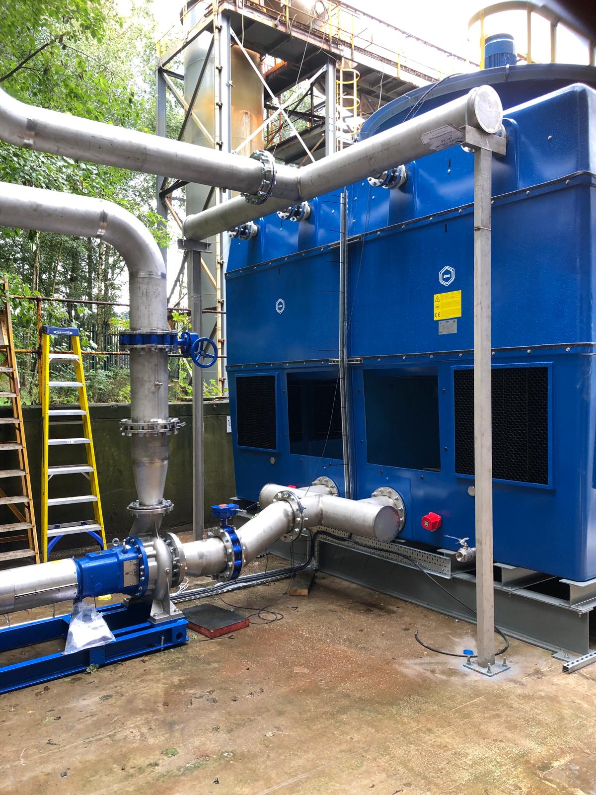 The system was engineered to deliver 6047 kW of heat rejection capacity and incorporated corrosion-resistant materials throughout, combined with prefabricated components to enable efficient installation within the shutdown period.
