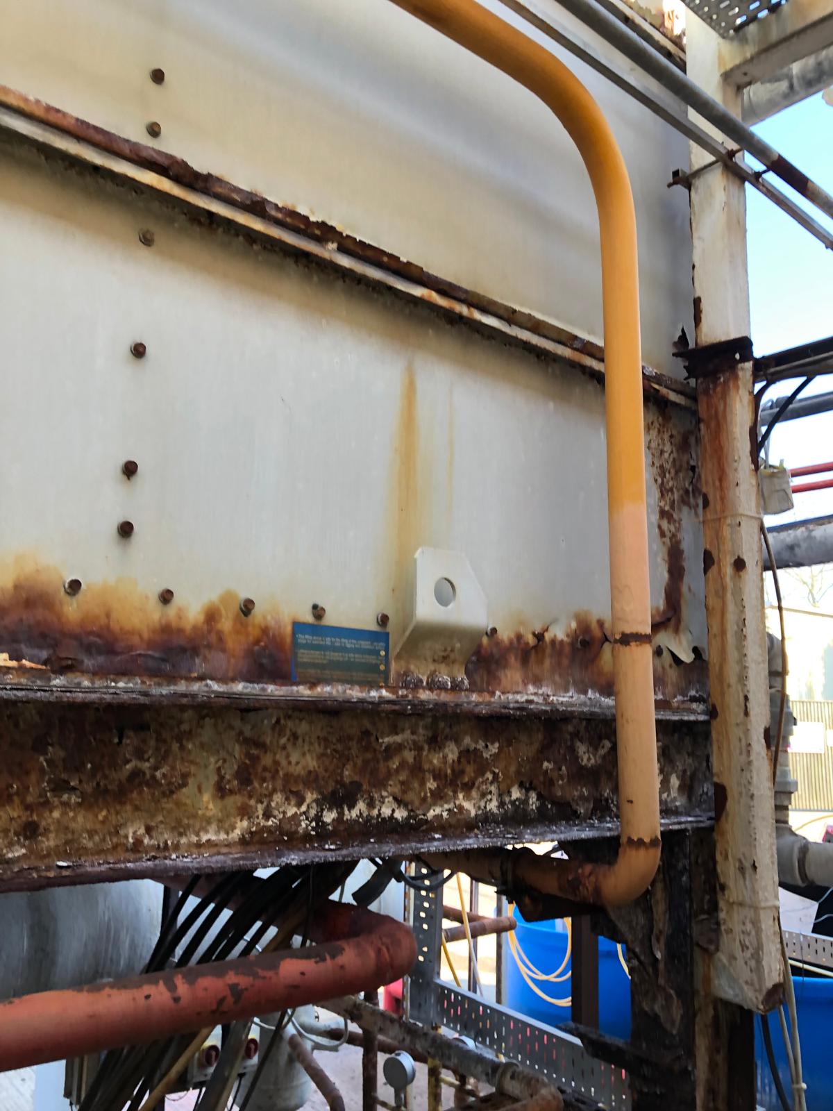 Progressive corrosion in metal cooling towers leads to structural degradation, leakage and ongoing repair cycles.